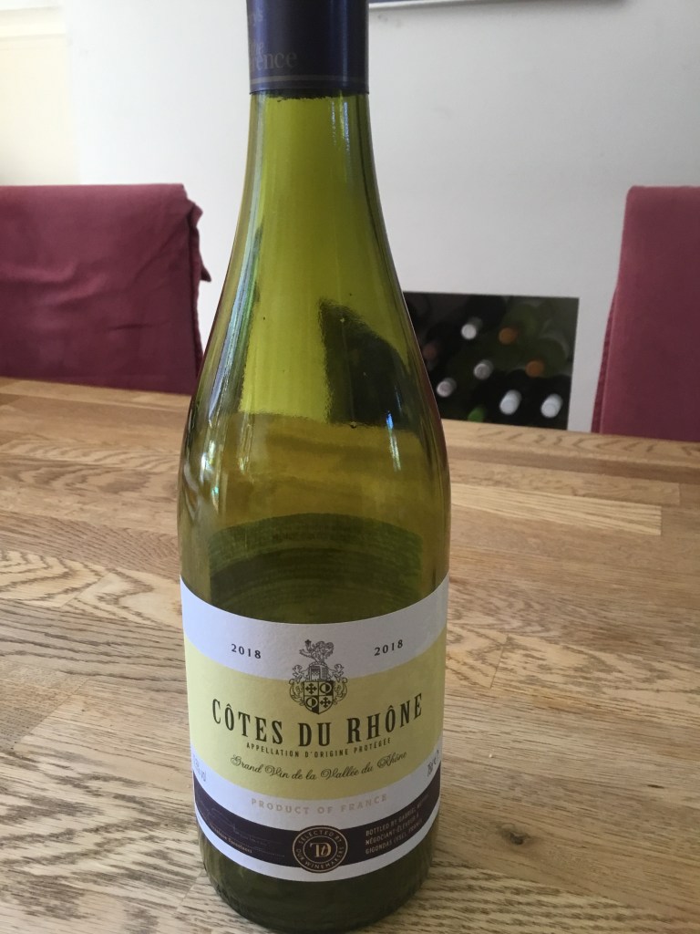 Tasting notes: This is typical white Côtes du Rhone – a blend of multiple grapes. Often aromatic, doesn’t often offer much aging potential (so drink young). Appearance is pale lemon in colour. On the nose floral and stone fruit notes. Closes up if over-chilled. Same notes on the palate. Balanced acidity. Some length to the finish. Just off dry. Some intensity and some complexity.